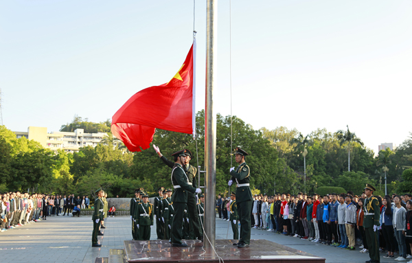 校长徐西鹏、副校长吴季怀分别在升国旗仪式上致辞。徐西鹏称,建校57年至今,学校综合办学实力和海内外影响力得到显著提升,高水平大学建设事业取得良好开局。他表示,党的十九大昭示着中国从此进入新时代。华侨大学将立足新的起点,把握发展大势,以党的十九大精神为引领,以建设高水平大学为核心,以实施“侨校+名校”战略为抓手,坚持走内涵发展之路、特色兴校之路、人才强校之路,全面提升人才培养质量和整体办学水平,努力办好人民满意的大学,向着建设特色鲜明、海内外著名的高水平大学的目标继续前进。