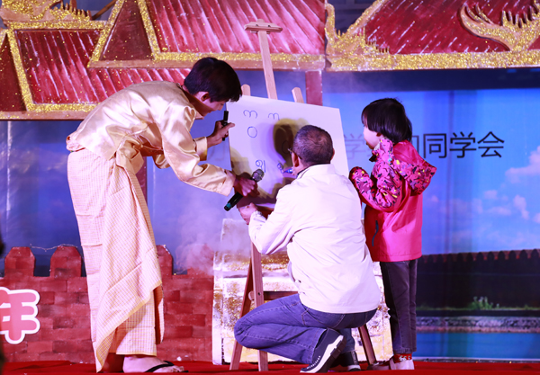 伴着轻快的鼓点声,身着盛装的缅甸同学迈着热情的舞步入场,用传统的洒水仪式问候观众,为大家祈福。来自中国、缅甸的主持人身着特色民族服装,宣布缅甸文化展开幕。