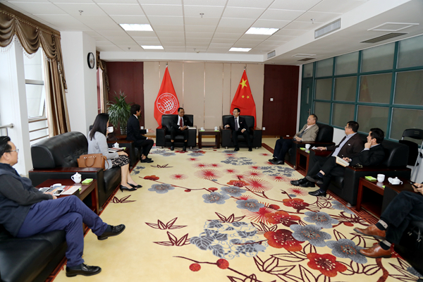 我校国际交流合作处、华文学院、华文教育处、校友工作办公室负责人等参加会见。