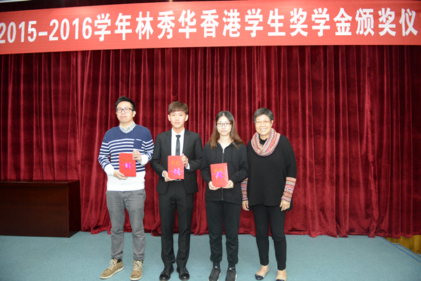 11月20日下午,我校2015-2016学年林秀华香港学生奖学金颁奖仪式在庄为烜报告厅举行。我校董事会副秘书长蔡素玉出席仪式并为46名获奖学生颁奖。