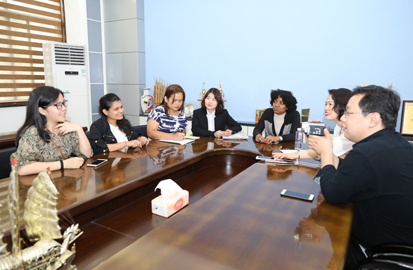 调研组一行与我校校长徐西鹏,新闻与传播学院、海上丝绸之路研究院、华文教育研究院、华文学院、华侨华人研究院、国际关系学院负责人及部分教师座谈,并访谈了外国政府官员中文学习班、“海丝”国家高端人才培训班、华文教育专业部分留学生。