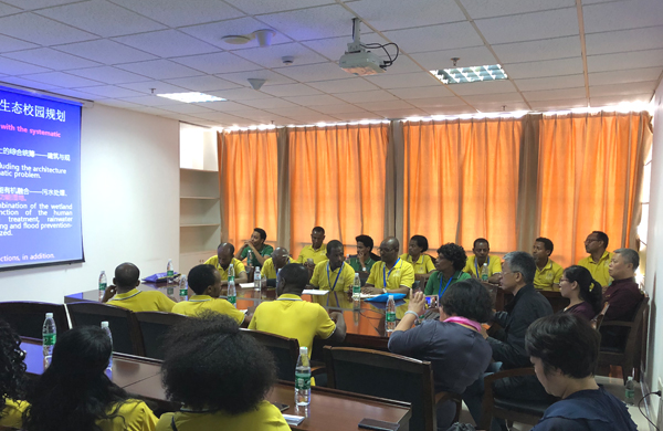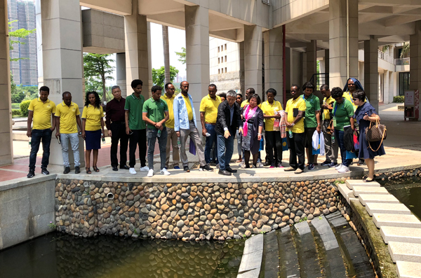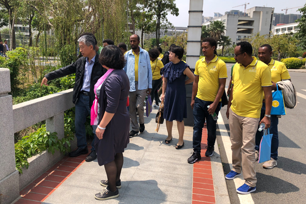 2018年中国-埃塞俄比亚科技官员研修班3名老师及19名学员4月17日到我校厦门校区考察“海绵校园”建设。