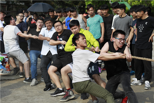 开幕式上并为“华侨大学先锋社区公益服务队”授旗,进行友谊拔河比赛。