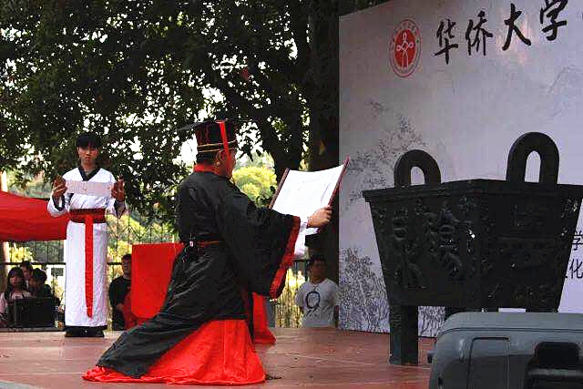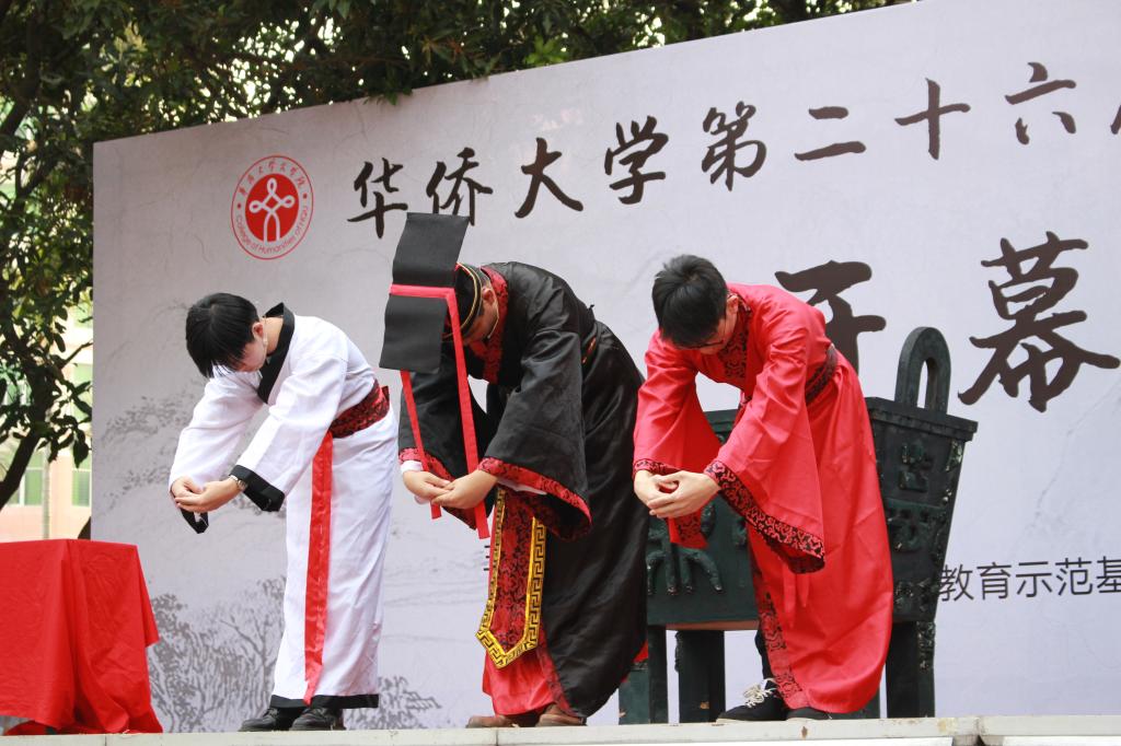 4月22日下午,由华侨大学文学院、“觞鼎文化,国学传承”教育示范基地主办的第二十六届觞鼎中华文化节开幕式在泉州校区四号篮球场举办。
