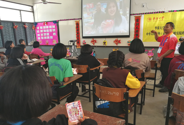 由华侨大学华文学院21名留学生和7名国内学生组成的“华文星火”中华文化海外传播实践团,今年寒假分赴泰国、印尼、老挝3个国家的5所中小学开展以“回家过个中国年”为主题的中华优秀传统文化传播志愿服务活动。