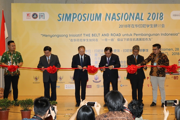 研讨会由印尼驻华大使馆、印尼驻广州总领事馆指导,厦门市侨联支持,在华印尼留学生协会主办,厦门印尼学生联合会承办,我校国际交流合作处协办。印尼驻华大使周浩黎、我校副校长曾路、印尼驻广州总领事谷丹多、厦门市侨联副主席邓飚等共同为研讨会开幕剪彩。
