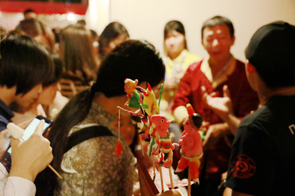 而掀起高潮的,则是那只在舞台上撒娇、翻滚的机灵小猴子。非物质文化遗产传承人林文荣手持悬丝,操控小猴子上下翻滚、活灵活现,引得现场阵阵掌声。林老说:“在闽南一带,老百姓叫演木偶戏都叫演‘嘉礼’。‘嘉礼’与老百姓的生活是息息相关的,生、老、病、死,‘嘉礼’无一缺席。”