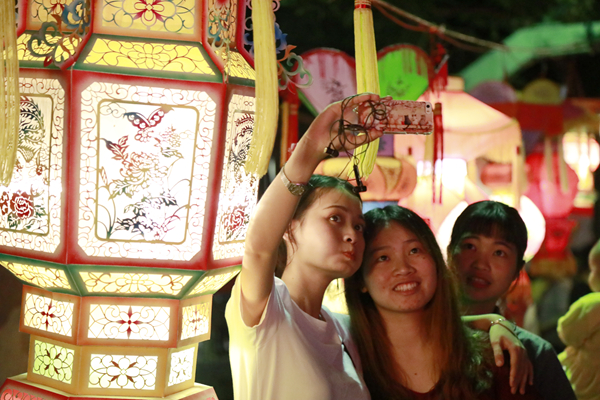 与花灯合影