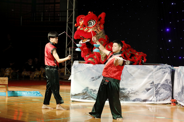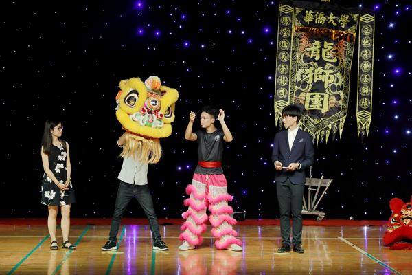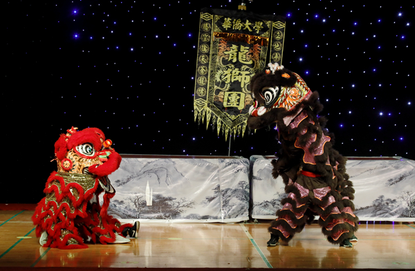金龙上下翻飞、狂舞争斗,醒狮则时而威风时而嬉戏。公演持续近两个小时,现场观众不时齐声为同学们的精湛表演欢呼喝彩。互动环节,热情的观众纷纷上台学习舞狮,体验演员们台上功夫的不易。