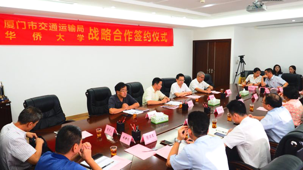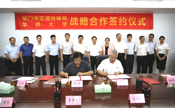 7月16日下午,华侨大学与厦门市交通运输局战略合作协议签约仪式在厦门市交通大厦举行。华侨大学党委副书记刘斌、厦门市交通运输局副局长师强代表双方签署战略合作协议书和项目合作意向书,华侨大学校长徐西鹏、厦门市交通运输局局长王文杰等见证签约。