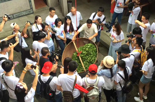 学生观看并拍摄铁观音摇青技艺