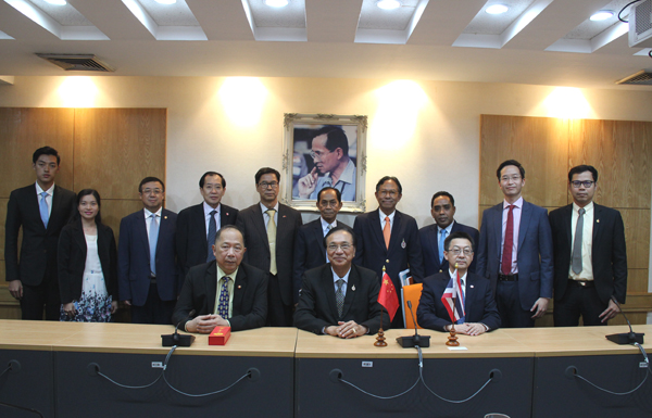 代表团与泰国南部公立高校瓦来岚大学的交流也达到了预期目的。瓦来岚大学校长Sombat Thamrongthanyawong、副校长Surin Maisrikrod、Charun Bunyakan及相关学院负责人一行专程从泰国南部校园赶到瓦来岚大学曼谷代表处与我校代表团交流。双方就汉语教学、师资培训、研究生培养、本科生交流等议题展开讨论,并达成共识,希冀尽快签署谅解备忘录,推动两校开展实质性交流与合作。