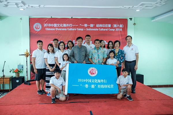 8月21日,由中国华文教育基金会主办、华侨大学承办的2018中国文化海外行——“一带一路”经纬印尼营在印尼文桥三语学校开营。中国驻登巴萨总领事馆总领事苟晧东、领事孙丽华,文桥三语学校董事长江睿,华侨大学教师团队以及营员代表等近300人参加开营仪式。