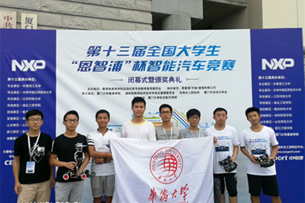 本次比赛历时4天,共有来自全国152所高校1125名学生组成的343支队伍参加。我校信息科学与工程学院智能车队共派出两组队伍参赛,经过激烈角逐,由林伟勋、周宇浩、安士佳、钱麒麟组成的“HQU曙光伯爵队”(指导老师:唐懋、黄公彝)以第七名的成绩获得双车会车组一等奖;由梁毅庆、阳德行、邱达飞组成的“华大FREE RIDER队”(指导老师:黄公彝、晏来成)获信标组二等奖。