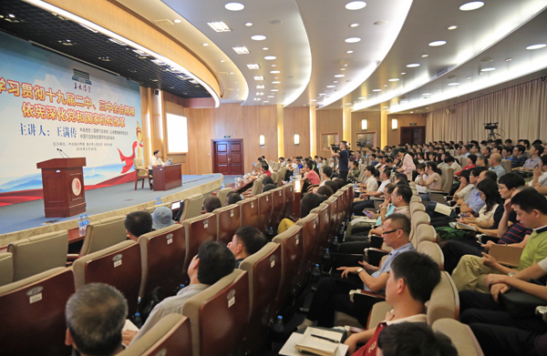 9月28日下午,由中共泉州市委市政府和华侨大学联合主办的“华大讲堂”举行第77场报告会,300余名泉州市领导干部和华侨大学师生在陈嘉庚纪念堂共同学习十九届二中、三中全会精神。