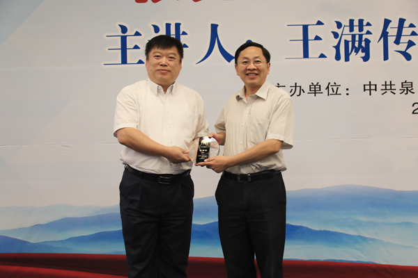 副校长彭霈为王满传教授颁发“华大讲堂”主讲嘉宾纪念牌