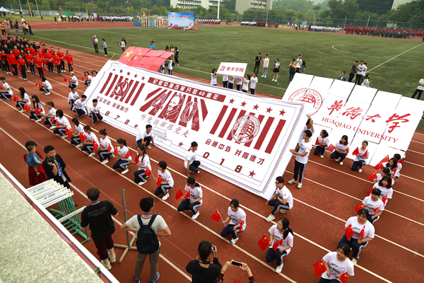 在文体表演环节,由体育学院师生共同演绎的龙狮表演用一个个高难度的动作带来了精彩绝伦的视觉盛宴,舞出了华大学子的青春风采和炫丽技艺。校学生艺术团的HQD街舞团,以动感的音乐、干净利落的动作诠释着激情澎湃、活力飞扬,瞬间点燃了全场的气氛。而排舞表演由来自泉州校区12个学院的400位同学完成,他们意气风发,用轻快的动作展现着饱满的精神状态和美好的青春年华。