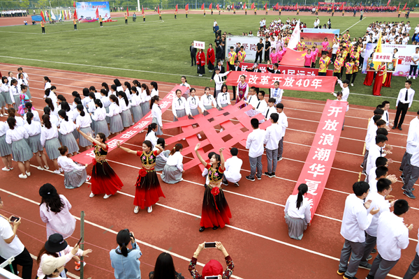 伴随着音乐,由师生组成的各方阵整齐划一,迈步入场,用青春的方式展现自我风采。