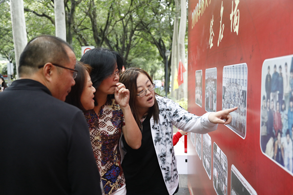 美术学院2004级视觉传达专业两个班级的校友大部分返校参加了活动,他们身着统一服装、佩戴着专属纪念徽章,重新走过曾经生活、学习的宿舍、教室等。能与老同学在华园相聚,他们都高兴地表示,“华大的校园发生了不小的变化,比以前扩建不少,建筑也多了。”“树还是那些树,但是长高了。”