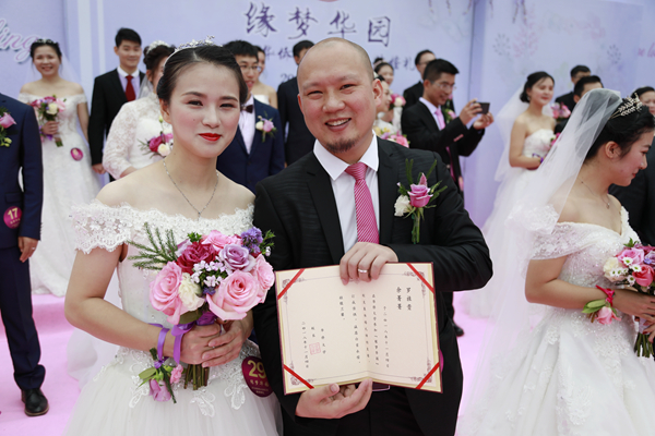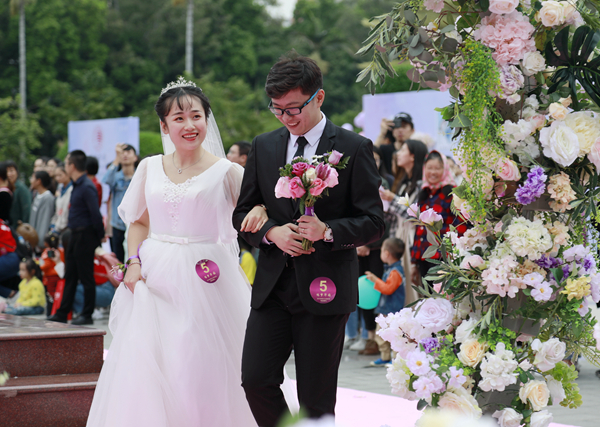 “从2011年到现在,我们一起走过了七年,感情平淡但却长久。”美术学院2012届校友张文滔挽着同为美术学院2013届校友的妻子陈颖,深情地说,“大学的爱情不是一毕业就分手的。”值得一提的是,两人参加完校友集体婚礼,当天还将在华园举办自己的个人婚礼。“华大就像我们的家一样。”张文滔笑着说。