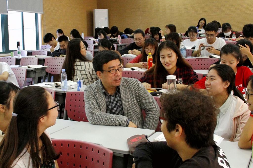 陈旋波在课间与同学们交流