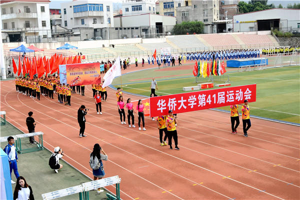 华侨大学第41届运动会厦门校区赛事11月9日上午在田径运动场开幕。校领导徐西鹏、刘斌、彭霈、毕明强等出席开幕式。