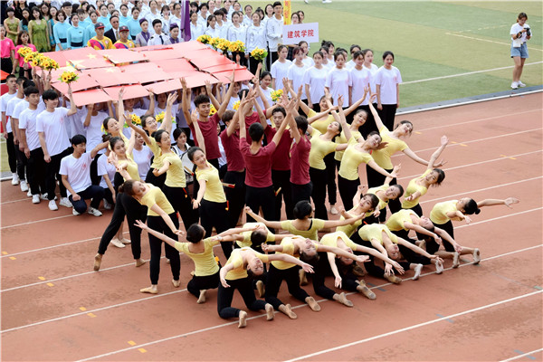 伴随着《运动员进行曲》,由各学院及机关工会代表队组成的17个方阵纷纷亮相。师生们衣着鲜艳、激情饱满,结合各种创意形式表演,展现华大人的卓越风姿。