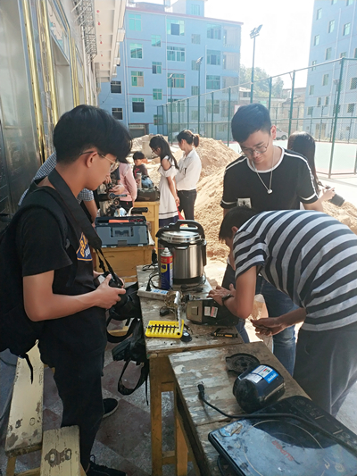 在义诊的不远处,信息科学与工程学院的家电维修服务队正忙着热火朝天,闻讯赶来的村民们不仅带来了厨具等小物件,还有电视机、洗衣机等大家电。“原本以为家电维修在当下应该不会有太多需求,然而走出校园,走进农村,才发现,我们要学习的知识还有很多,要奉献的还要更多一些。当我修好一个电饭煲时,觉得好有成就感,感觉比村民还要高兴。”周宇浩说。