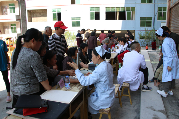 惠农服务活动在校医院的义诊中拉开序幕,十余名医务人员为村民免费看病、测血压、测血糖、定血型等。除了常规检查,对于初步诊断出的疾病隐患,医务人员也会现场给予耐心的释疑与中肯的建议。校医院院长邹循东表示,义诊活动除了现场把脉问诊外,更有意义的是借此机会,在村民中积极宣讲和答疑当前的农村医保政策,引导村民防微杜渐,避免讳疾忌医,正确认识到“早发现、早救治、早康健”的重要性。