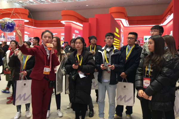 校党委副书记刘斌与研习营成员一同参观了“伟大的变革——庆祝改革开放40周年大型展览”。展览以坚持和发展中国特色社会主义为主题,紧扣改革开放40年历程,围绕改革开放的历史纵深感、群众获得感、发展成就感,安排设计了6个主题内容展区。参观过程中,讲解员声情并茂的讲解,让同学们深刻地了解到改革开放的光辉历程、伟大成就、宝贵经验,体会到党的十八大以来以习近平同志为核心的党中央将改革开放进行到底的政治魄力和坚定决心。