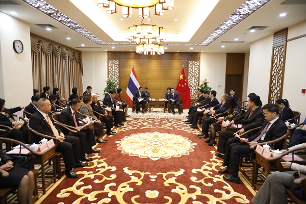 由泰国立法议员差猜旺·素颂吉、初差·本猜、瓦拉蓬·素迪亚努拉、差猜旺·阿披班希、素薇蒙·普密信哈勒等28位成员组成的泰国立法议会代表团,12月18日上午来校访问。