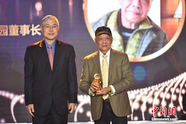 1月4日,由中国新闻社主办的“2018‘侨鑫杯’全球华侨华人年度评选”颁奖典礼在北京举行,“2018全球华侨华人年度人物”在现场揭晓。图为中国侨联信息传播部部长左志强(左)为海南万宁兴隆热带花园董事长、印尼归侨郑文泰(右)颁奖。中新网记者 翟璐 摄