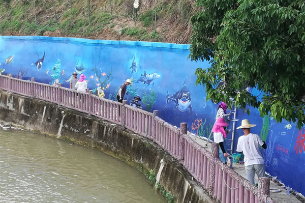 “粉刷匠行动”还积极参与华侨大学“百村千人行”港澳台侨学生服务乡村振兴计划,目前已在泉州市永春县新琼村、德化县朱紫村开展了两批次的美丽乡村乡貌墙绘项目。新琼村村书记潘文兵告诉记者,“学生们用热情、创意完成一幅幅精致美丽的作品,丰富了溪滨公园的旅游内容,增加了儿童观赏乐趣,村民们都很满意。”