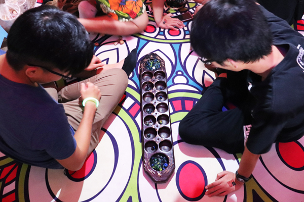 此外,在文化展示区,“美食天堂”的椰浆饭超越了大家所熟知的咖喱、煎饼,成为了当晚马来西亚特色小吃中的主角;一旁古朴原始的马来西亚服饰与猎具展览讲述着古代马来西亚的神秘魅力;悬挂的当地风景影集则展示了旖旎动人的马来风光;冲格(congkak)、蛇棋、打弹珠等马来西亚特色游戏,仿佛将大家带回了欢乐无忧的童年时光。