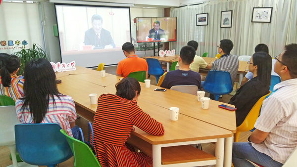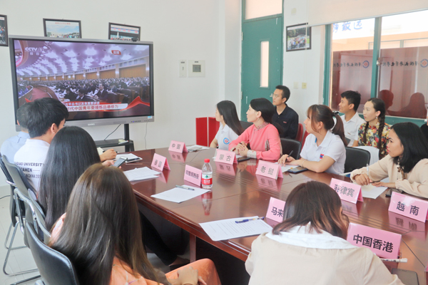 华侨大学各级党组织和广大党员干部、师生员工积极通过多种途径收听收看纪念大会盛况。在泉厦两校区,在各单位、各学院会议室和教室中,习近平总书记的重要讲话引发大家热烈反响。