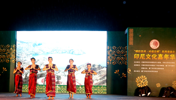 由印度尼西亚共和国驻华大使馆、华侨大学华文学院主办的“精彩亚洲·对话文明”系列活动之印尼文化嘉年华,5月26日晚在华侨大学龙舟池校区举行。近千名“一带一路”沿线国家留学生同享印尼文化嘉年华。