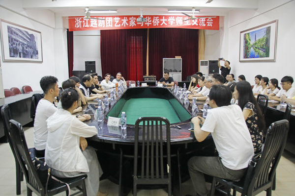 当日,浙江越剧团的艺术家还与华侨大学师生在椿萱楼二层会议室交流座谈,共同探讨戏曲艺术的教学、研究、传承与发展。浙江越剧团团长陶铁斧和部分国家一级演员、二级演员,我校文学院教授马华祥、副教授骆婧及穿越话剧社代表、戏曲爱好者等参加交流。