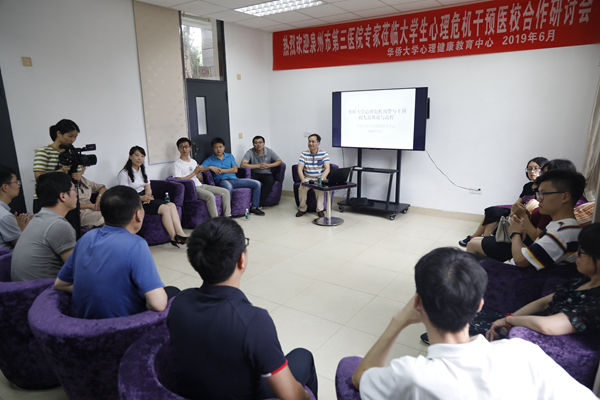 我校学生处负责人,心理健康教育中心专兼职教师、各学院心理健康教育督导员、班级心理保健员学生代表等参加揭牌仪式,并与泉州市第三医院、厦门市仙岳医院的专家就“大学生的心理危机预警与干预”等主题展开座谈交流。