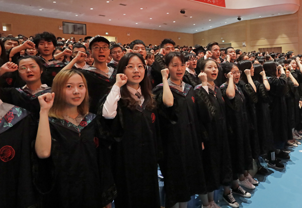 “四年来,我们与母校风雨兼程,砥砺前行。母校的每一个角落,都弥漫着属于我们的独家记忆……”毕业典礼上,毕业生代表、计算机科学与技术学院的杜梓林和王珍妮共同代表全体毕业生宣誓:“不忘父母养育,铭记师长教诲。会通中外文化,并育善德博才。让先进成为个性,让优秀成为习惯。勤奋务实,用汗水和才智追求真理。果毅力行,以青春和热血奉献社会。敢于担当,以奋斗之我谱写壮丽华章。擦亮侨校金字招牌,让明日的华侨大学以我为荣!”