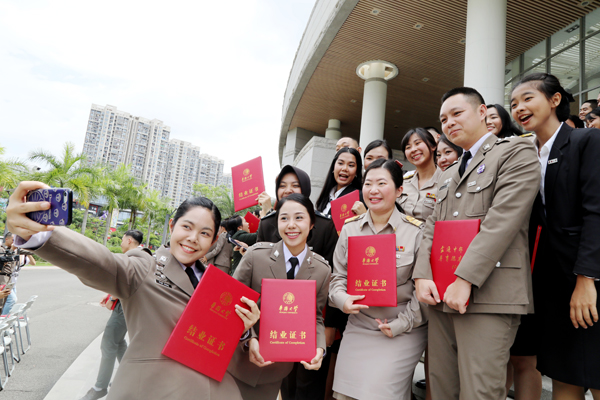 中央统战部十局巡视员汤翠英,华侨大学校长徐西鹏,泰国泰中文化经济协会副会长张祥盛,菲律宾警察总署人事厅厅长玛里埃尔·马格韦,老挝总理府办公厅秘书司副司长维绞·布帕万,泰王国驻厦门总领事馆领事王锦霞,菲律宾驻厦门总领事馆文化官艾诺伊,华侨大学副校长曾路出席毕业典礼并为学员颁发结业证书。