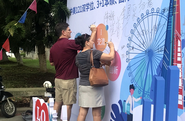 外籍教师夫妇写下祝福语