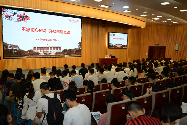 9月17日下午,副校长吴季怀在陈嘉庚纪念堂科学厅以“不忘初心使命 开启科研之路”为题,为泉州校区近500名2019级研究生上了入学教育第一课。