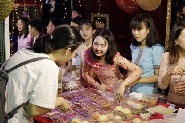 华文学院的摊点组织了绕口令、猜灯谜、猜古汉字等中国传统游戏。该院2019级学生许婉滢说:“多元文化交流融合是祖国繁荣昌盛的表现,我们准备的这些游戏,希望让更多的外国友人了解和感受中华文化的魅力。”