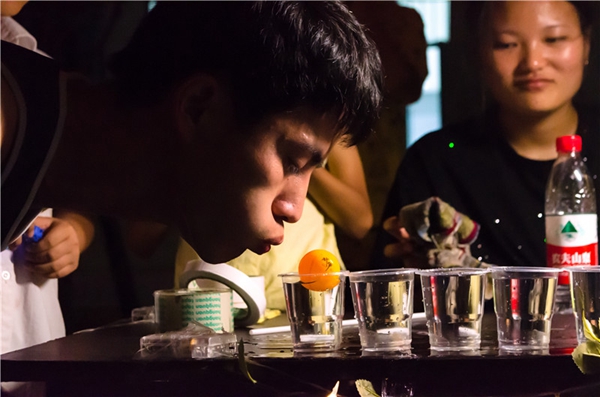 乒乓球协会的摊点前排起了长队,其中不少外国友人对挑战“一分钟夹乒乓球”跃跃欲试。“乒乓球项目作为中国体育的品牌之一,玩乒乓球是庆祝祖国生日的一种特别方式,玩的时候,我们心中感到非常自豪。”国际关系学院2018级学生张燕辉如是说。