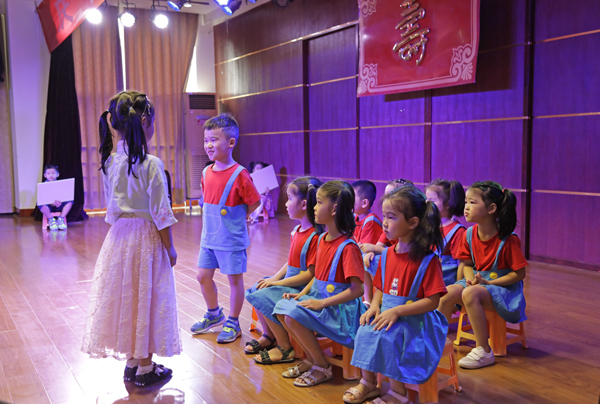 尤梅幼儿园的小朋友向老同志们献上纸扎花与祝福