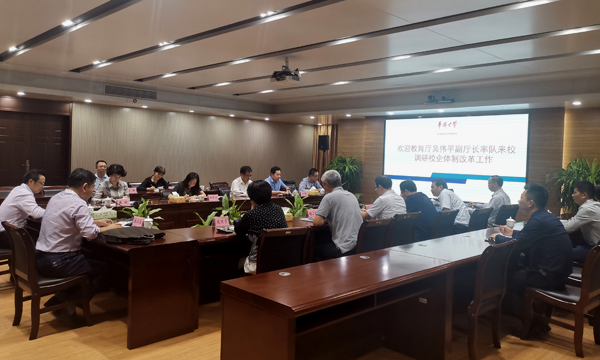 10月30日下午,福建省教育厅副厅长吴伟平率省人社厅、省税务局、省市场监督管理局、省机关管理局各相关处室负责人一行8人来校调研我校所属企业体制改革试点工作。