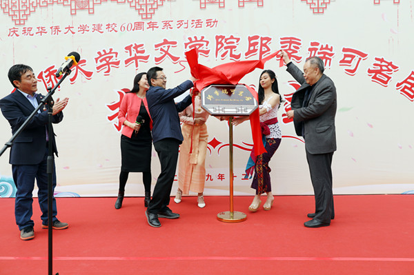 当日,华侨大学校长徐西鹏、邱季端先生共同为“邱季端可茗居”揭牌。