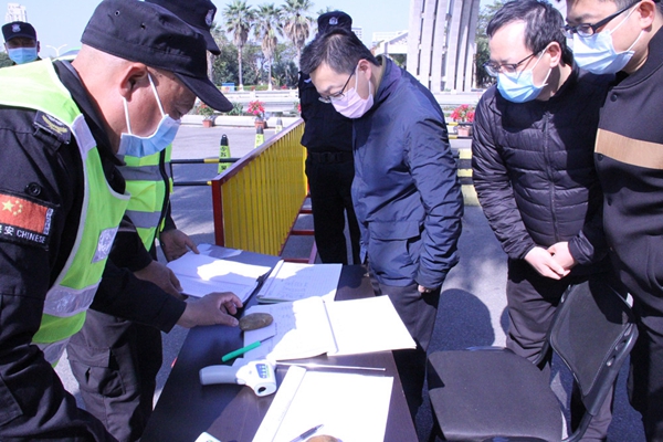 在南校门口,徐西鹏向保卫处负责人仔细询问门岗管控执行情况,查看出入登记簿,对保卫处前期采取的举措表示肯定,并向坚守岗位的执勤人员表示慰问。徐西鹏表示,学校大门是防控疫情的关键部位,保卫处责任重大,要为学校守好第一道“安全防线”。