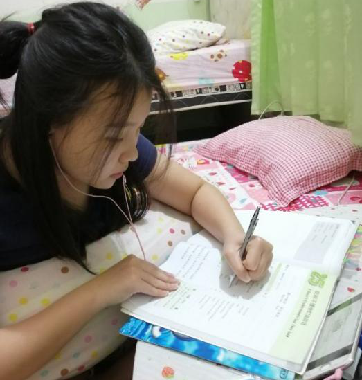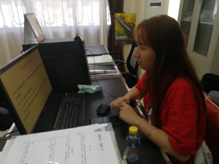 老挝留学生陈雅华借用亲戚的办公室参加线上学习
