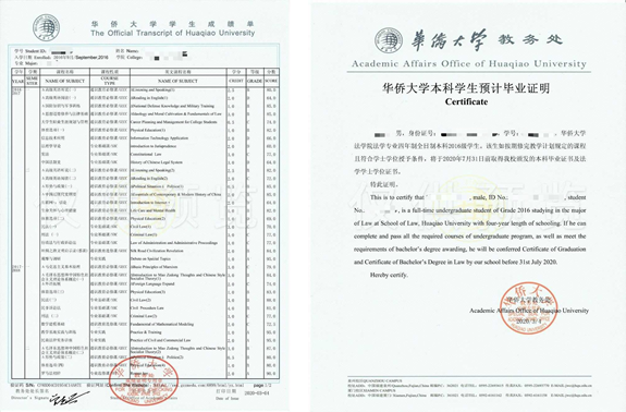 华侨大学学生中英文成绩单/华侨大学本科学生预计毕业证明